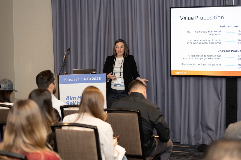 At KnowBe4 RKO, I presented new products to our sellers and partners. Partnering with the SVP of Product Strategy, I lead our teams through the value story of AIDA, mapping it back to our specific capabilities while he demoed the feature.